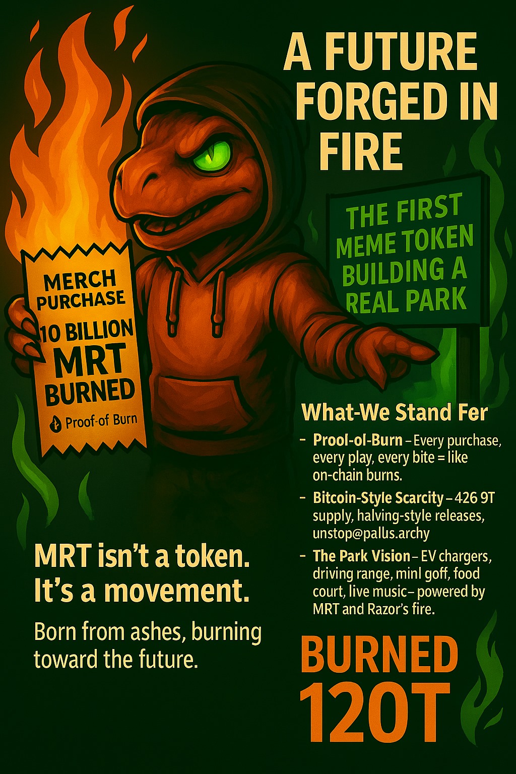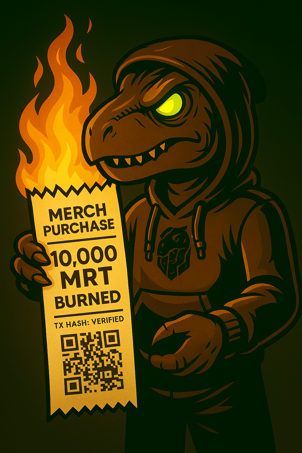 Every meal, every hoodie, every game fuels the Proof-of-Burn Protocol, where real receipts erase trillions of MRT forever.