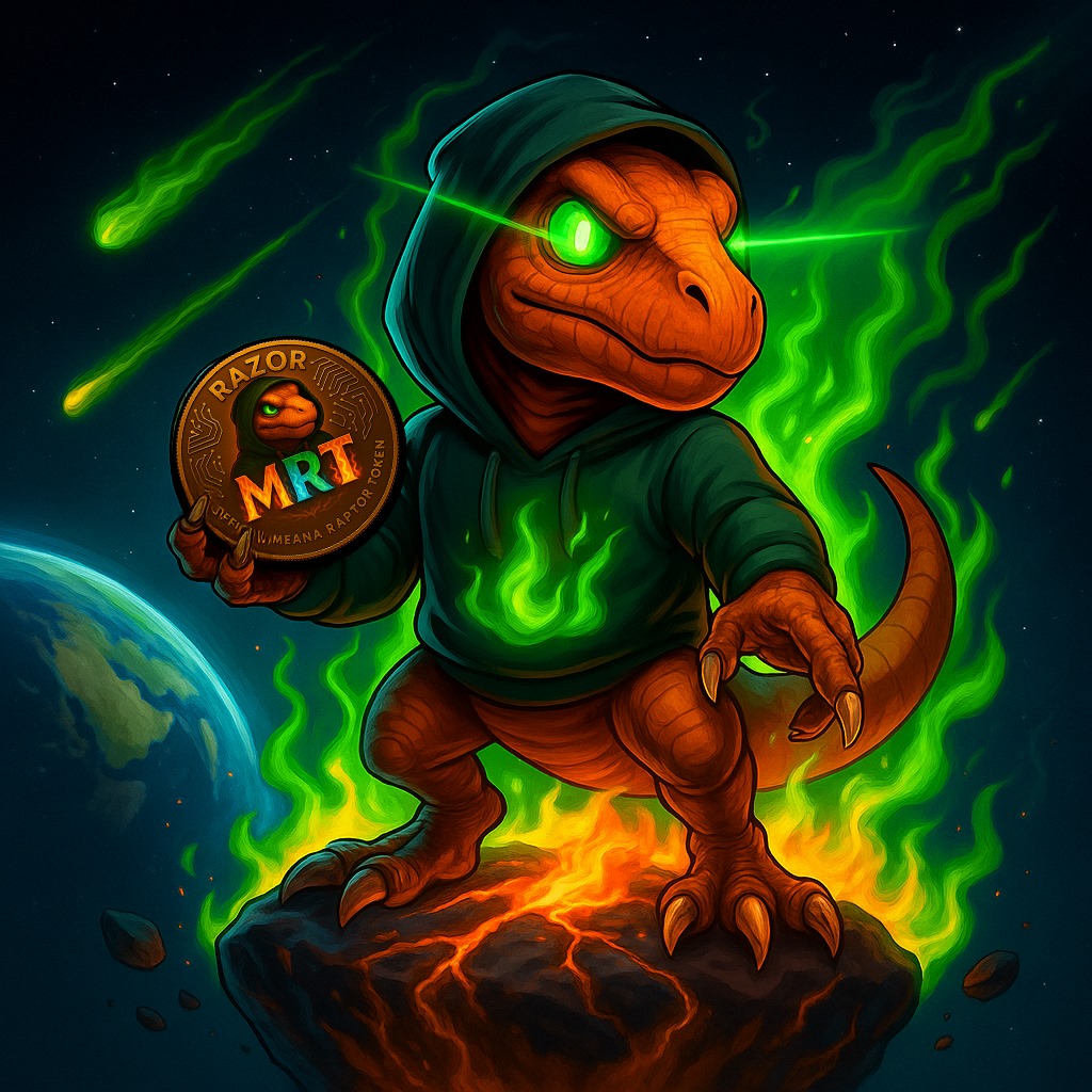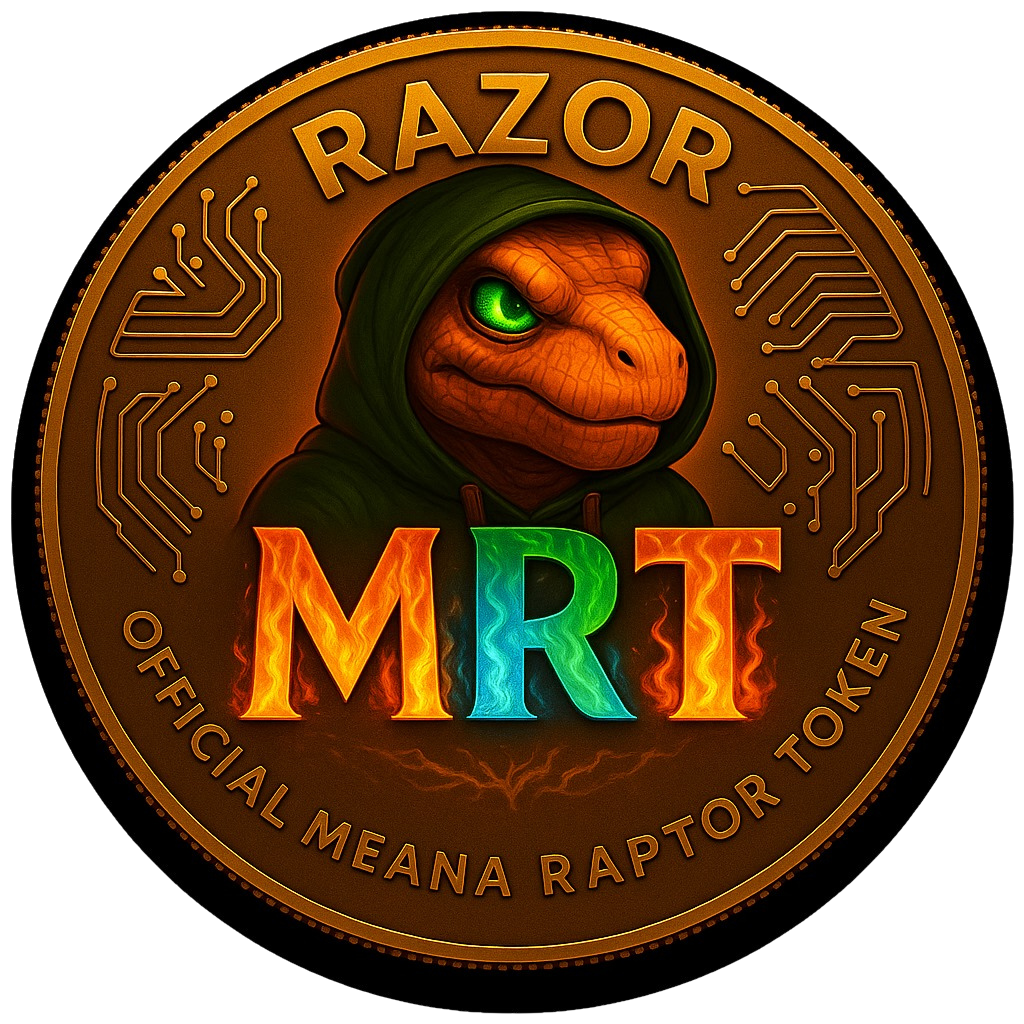 $MRT (Meana Raptor Token) powers every element of the Razor ecosystem — from park entry to merch to food and games. Every transaction burns $MRT on-chain, with proof. No dev wallet. No burn tax. Just fire.